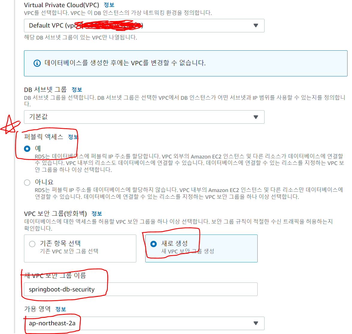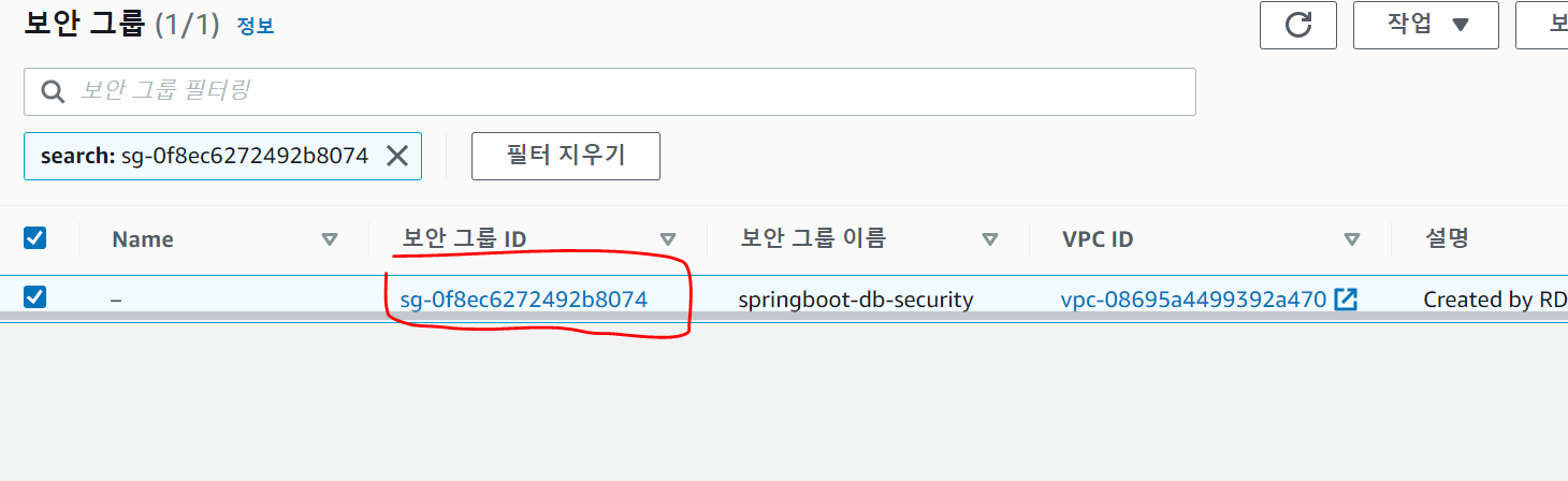 - 새 VPC 보안 그룹 이름 : springboot-db-security