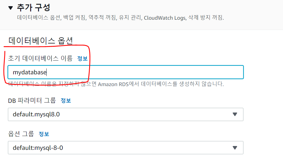 spring.datasource.url=jdbc:mysql://나의엔드포인트:3306/DB이름(mydatabase)